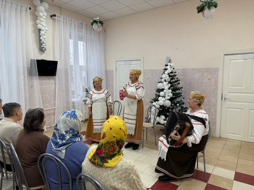 В рамках акции «От всей души» в отделении круглосуточного пребывания прошла концертная программа «Карнавал снежинок». В исполнении группы «Сяброўкі” ГУ «Лидский районный центр культуры и народного творчества»звучали песни, знакомые каждому, и зал наполнился атмосферой тепла и радости. Проживающие с удовольствием подпевали артистам, поддерживая друг друга и создавая ощущение настоящего праздника.