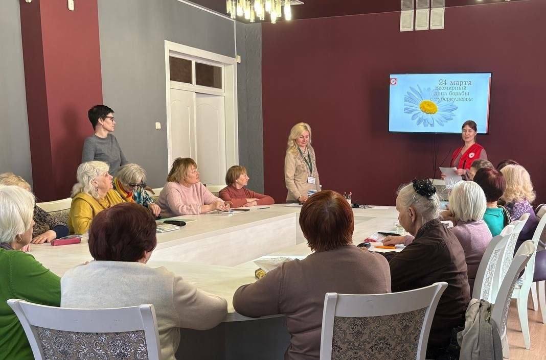Лидская РО Красного Креста провела информационный час в Лидском ТЦСОН. Главная тема — профилактика туберкулёза.